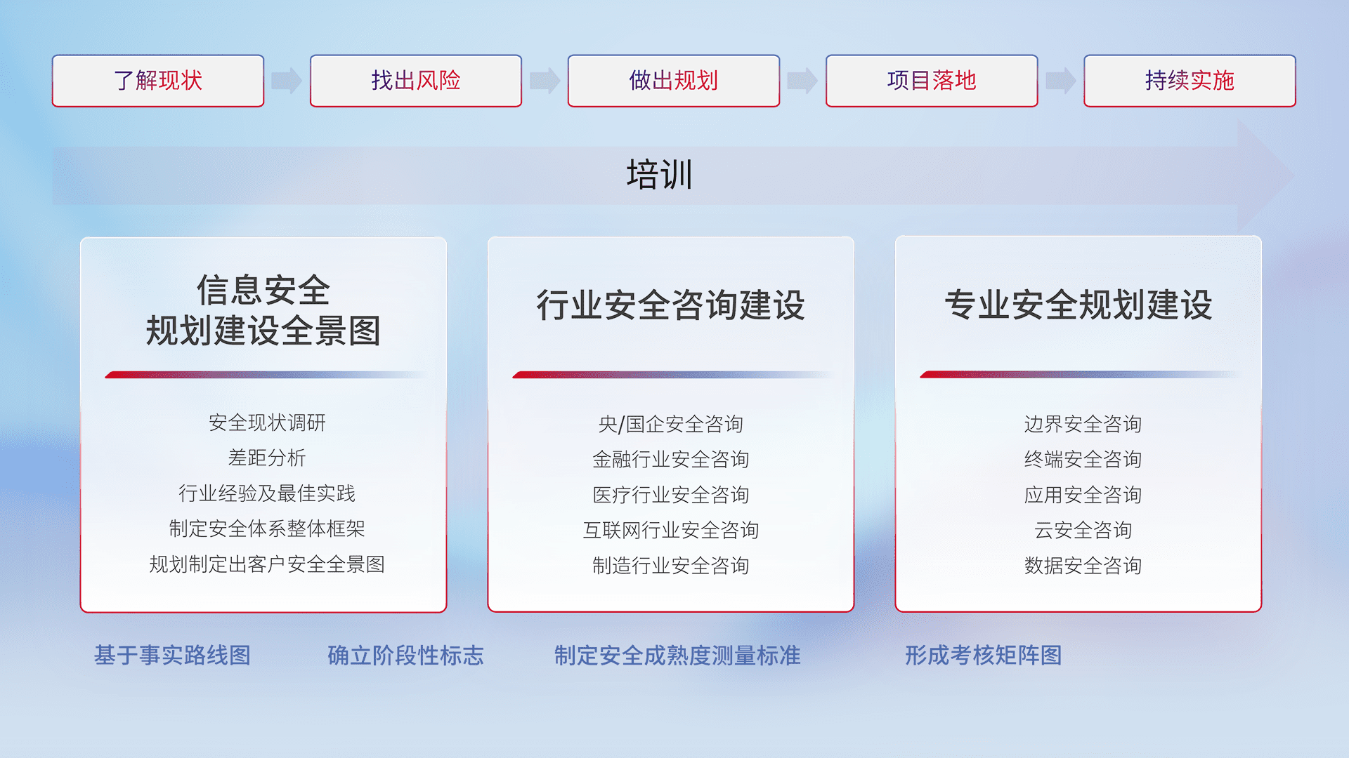 梳理客户信息安全现状调研、、、差距分析结果,,,,结合行业先进经验及最佳实践,,制订客户的信息安全管控体系总结架构,,最终形成一个完整的客户信息安全规划与建设的全景图。。。