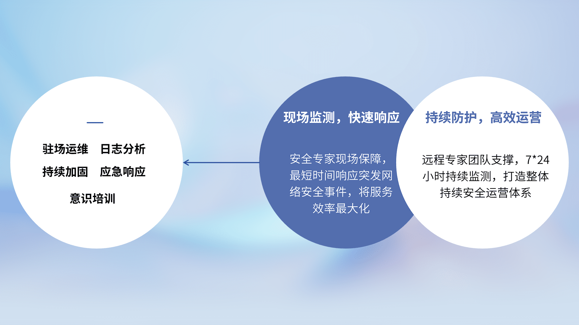 针对客户行业特性,,,,提供专属的一站式安全管理服务,,帮助客户全面感知网络空间威胁,,通过安全专家的线上、、线下防护支持,,,,实现风险闭环,,,将安全保障常态化,,,,为客户打造常态化安全运维运营服务。。